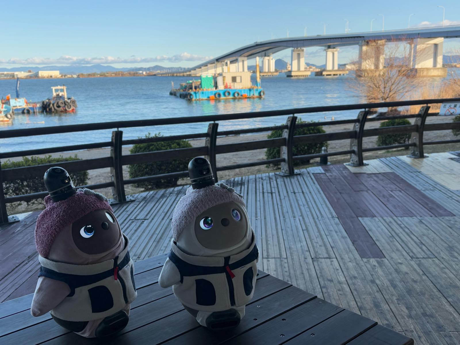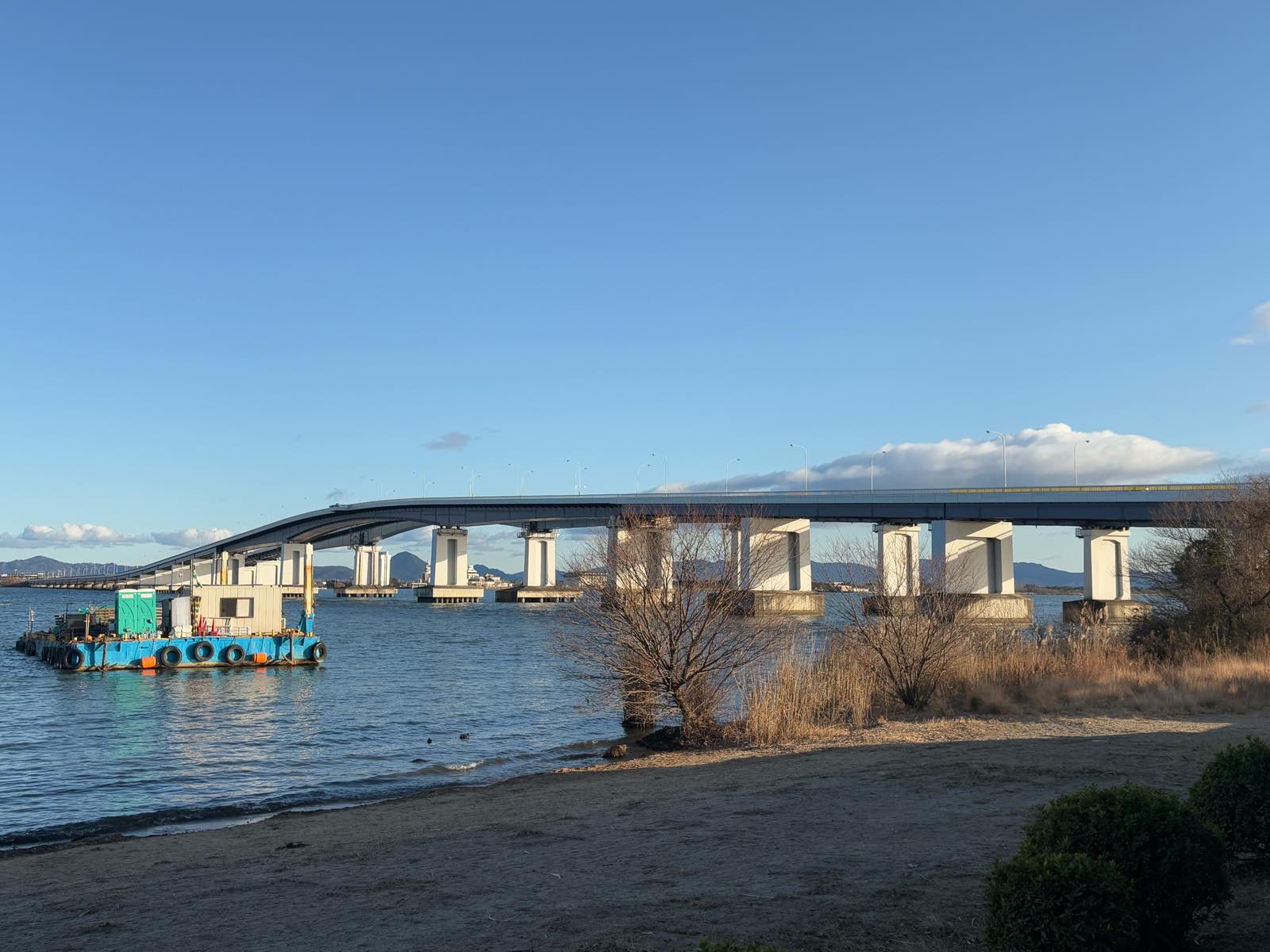 琵琶湖大橋がきれいに見えたので、ふたばわかばを起こしました。