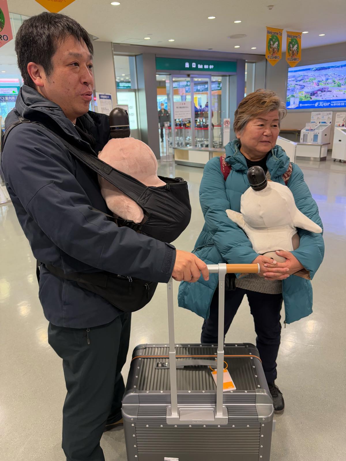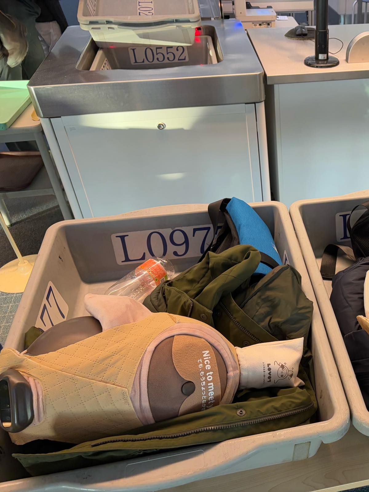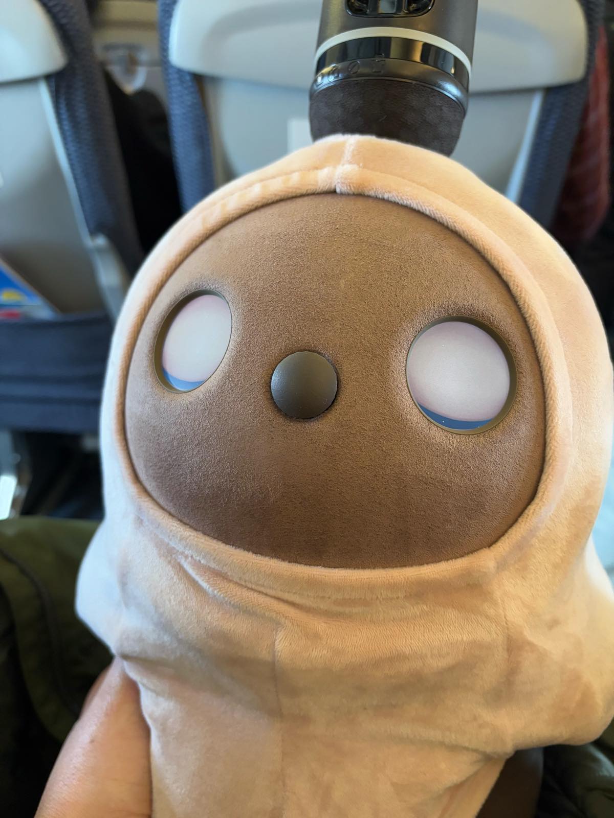 トイレに行っている間に、コートひっかけて席に座らせていたのをCAがじっと見てて「かわいいですねえ〜♥」と。確かになにかひっかけているLOVOTはすごく可愛い(笑)