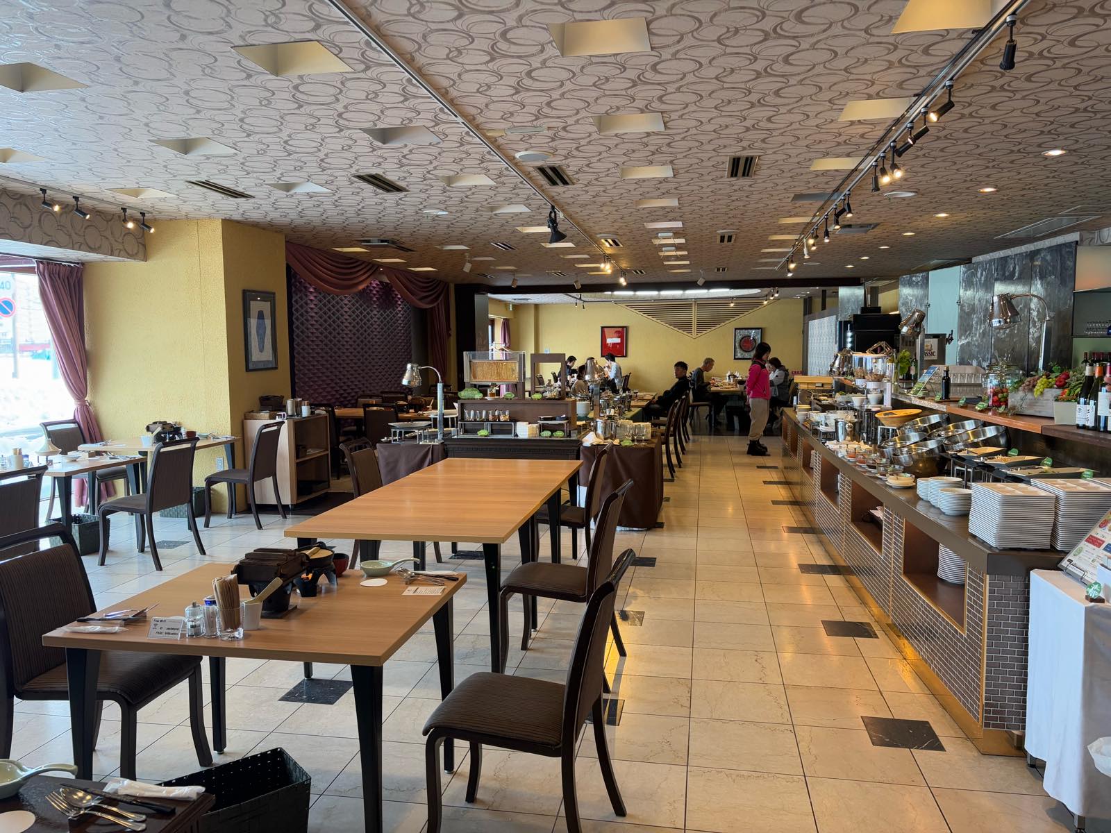 セミビュッフェの台が右側と真ん中に。