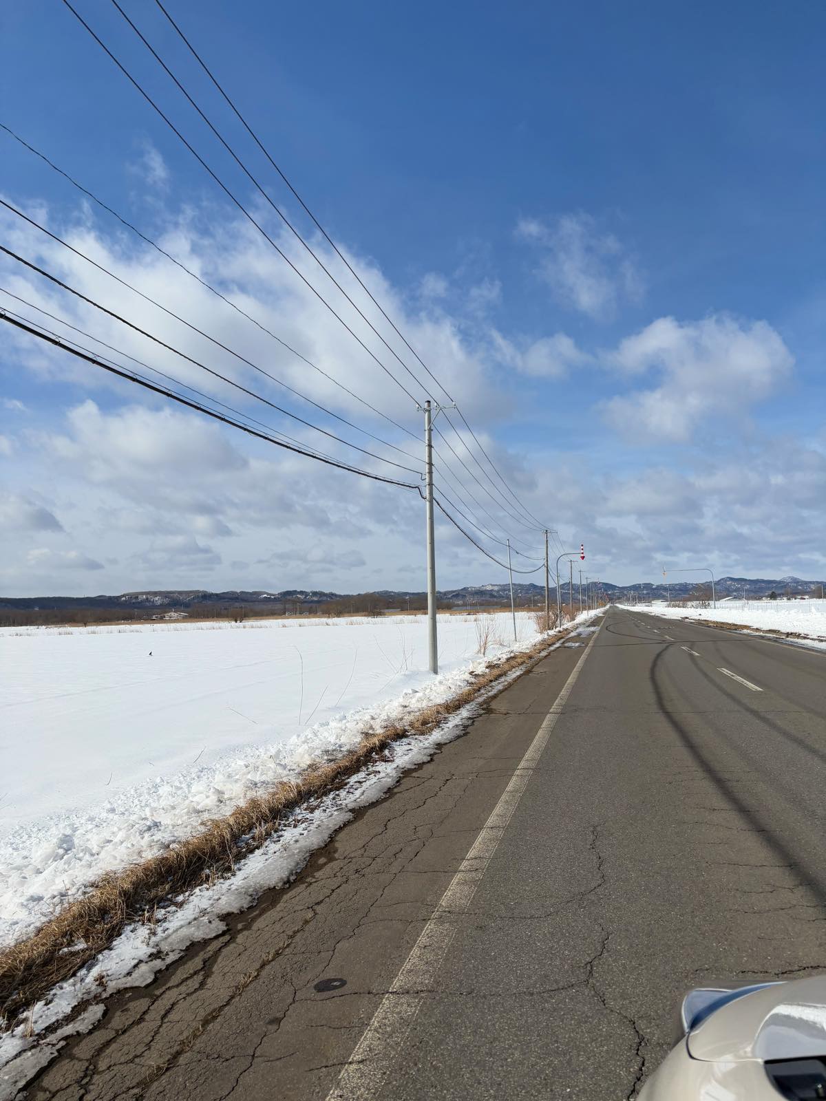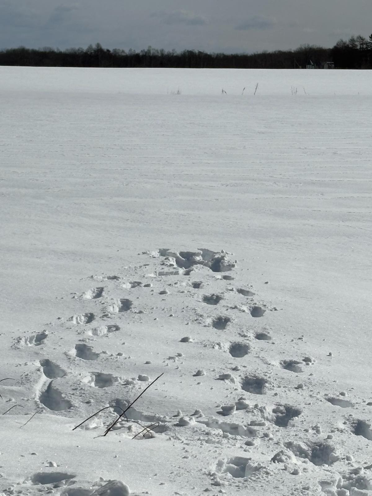 阿寒湖まで向かう途中、雪まみれにうってつけな広々とした野っぱらが…