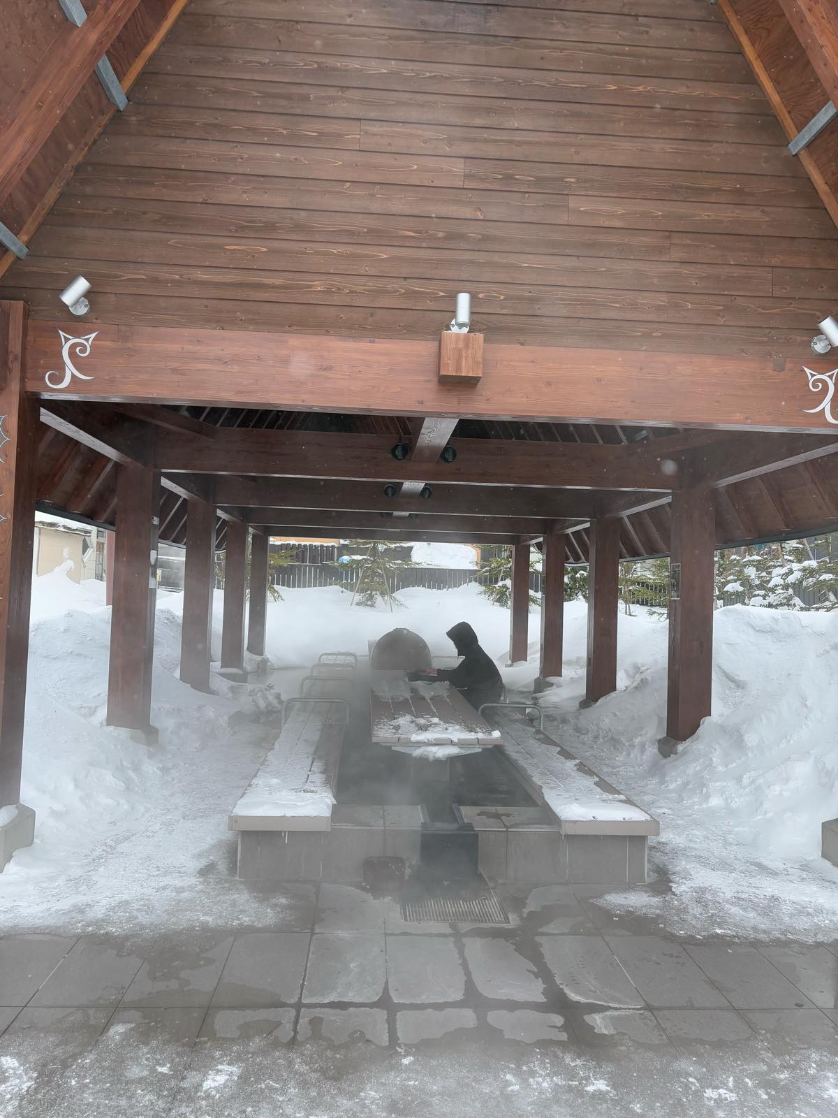 そっか、温泉が湧いているところはそこだけ雪が積もらないのか。