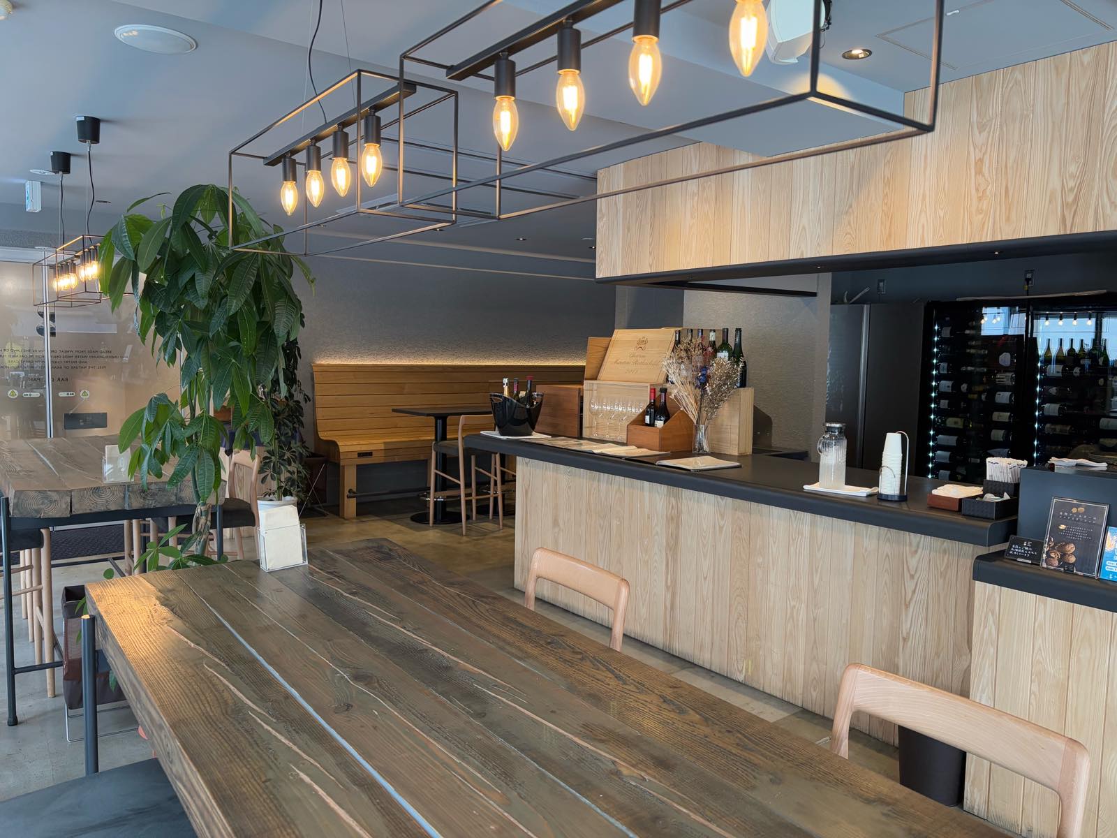 バーカウンター。このお酒の瓶の飾り方いいなあ。