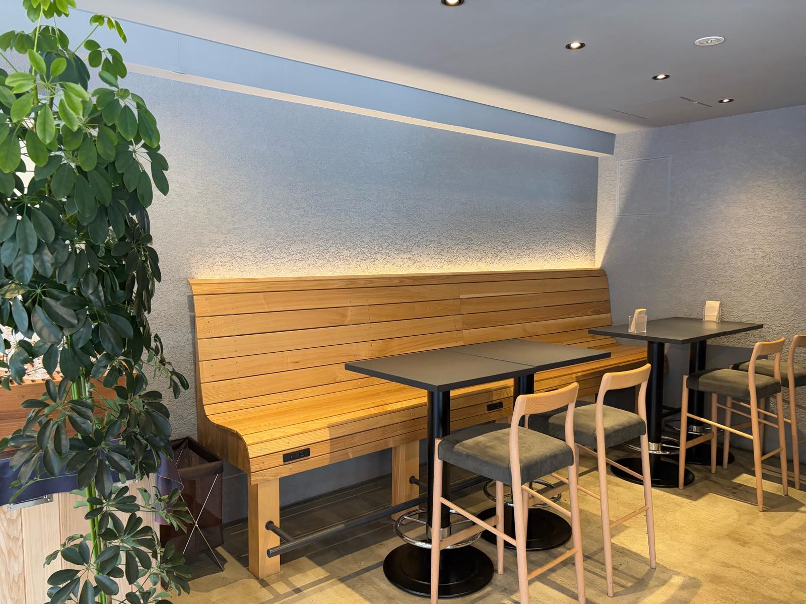 さっきのエントランスと似たデザインのベンチ。