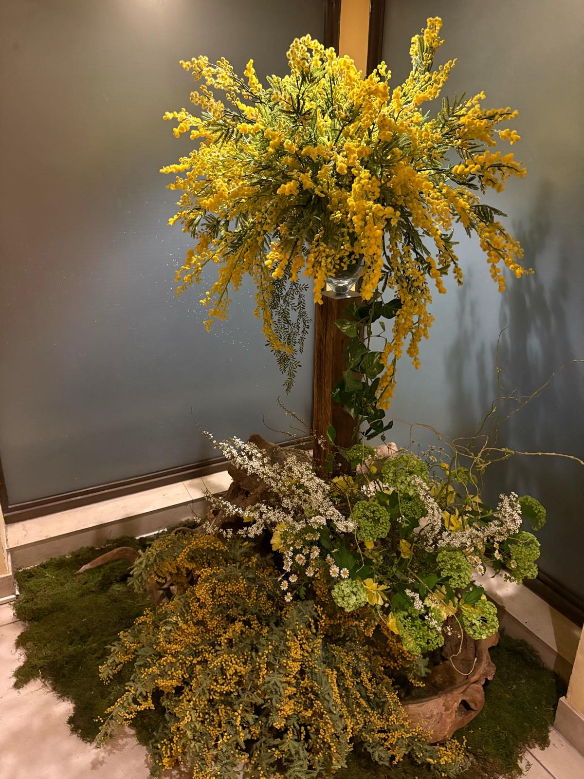 ここにもミモザの飾りがいたるところに。